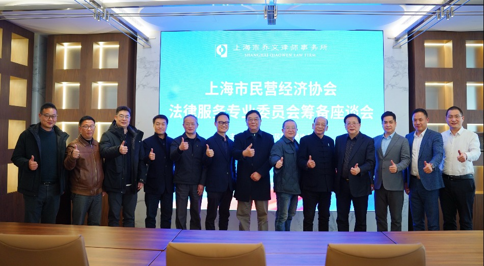 2026年03月19日,上海市民营经济协会法律服务专业委员会(法工委)筹备会议在上海市乔文律师事务所(以下简称乔文所)图书馆举行。本次会议由上海市民营经济协会主办,乔文所承办。上海市民营经济协会会长陈士豪,副秘书长李春燕,乔文所高级合伙人马建荣,以及宋正奇律师、郑玮律师等多位专业人士出席了会议。